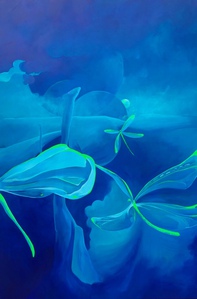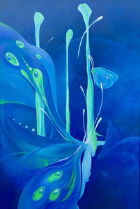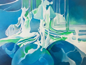 Een verhalend organisch spiritueel schilderij.
